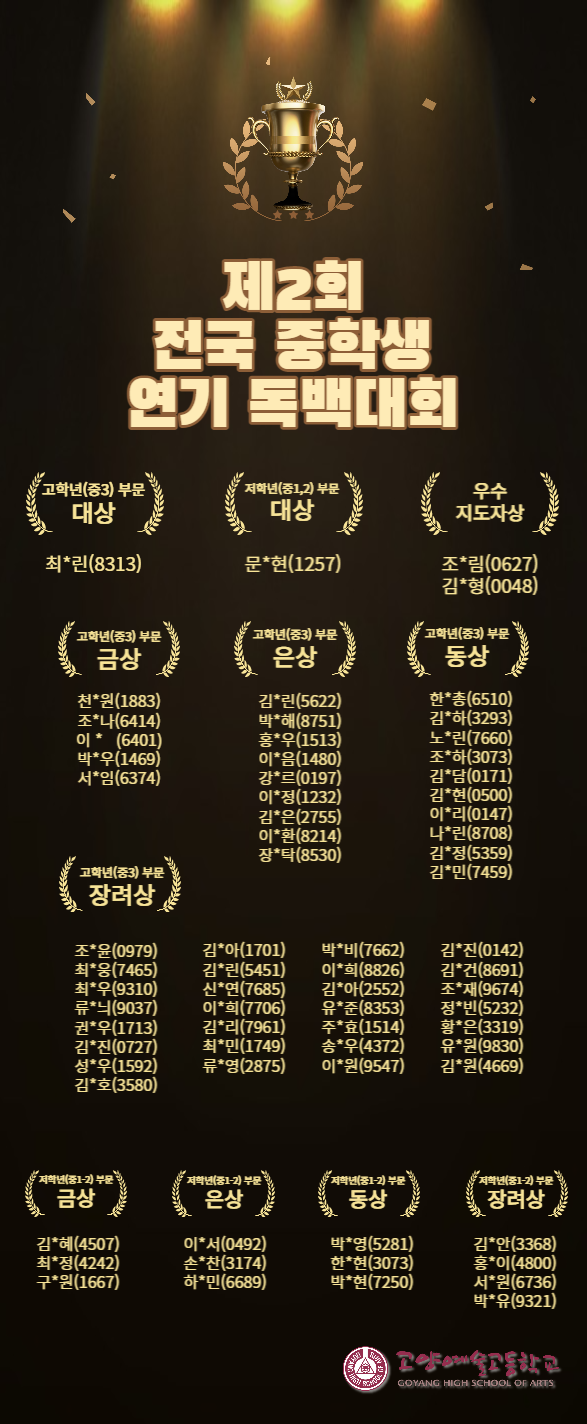 ¡ØÁ¦1ȸ Àü±¹ ÁßÇлý ¹ÂÁöÄà ´ëȸ ¼ö»óÀÚ ¸í´ÜÀº ¼ö»óÀÚ È®ÀÎ ÀýÂ÷°¡ ³¡³ª´Â´ë·Î °øÁöÇϵµ·Ï ÇϰڽÀ´Ï´Ù.