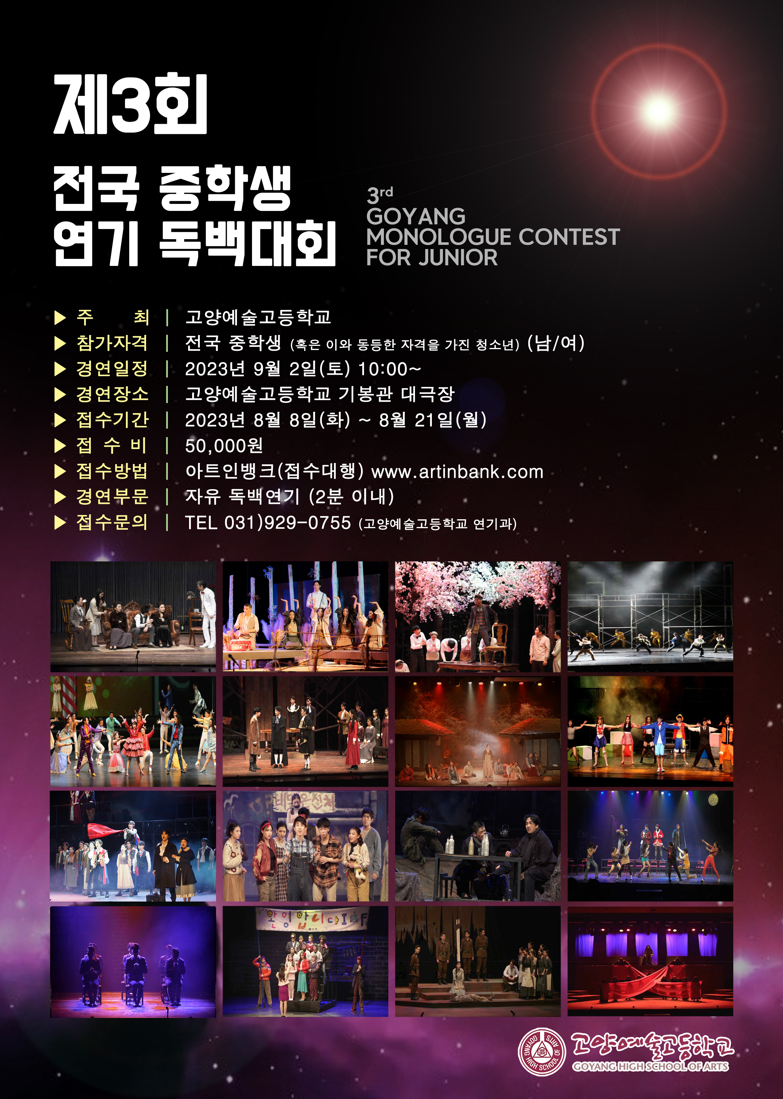 °í¾ç¿¹¼ú°íµîÇб³ ¿¬±â°ú´Â ¿Á¤ÀûÀ̰í âÁ¶ÀûÀ̸ç Àç´ÉÀÖ´Â ¿¹¼úÀÎ ¾ç¼ºÀ» À§ÇØ ¾ðÁ¦³ª ÃÖ¼±À» ´ÙÇϰڽÀ´Ï´Ù. Àü±¹ÀÇ ¹è¿ì¸¦ ²Þ²Ù´Â ÁßÇлý ¿©·¯ºÐµéÀÇ ¸¹Àº °ü½É°ú Âü¿© ºÎʵ右´Ï´Ù. °¨»çÇÕ´Ï´Ù.