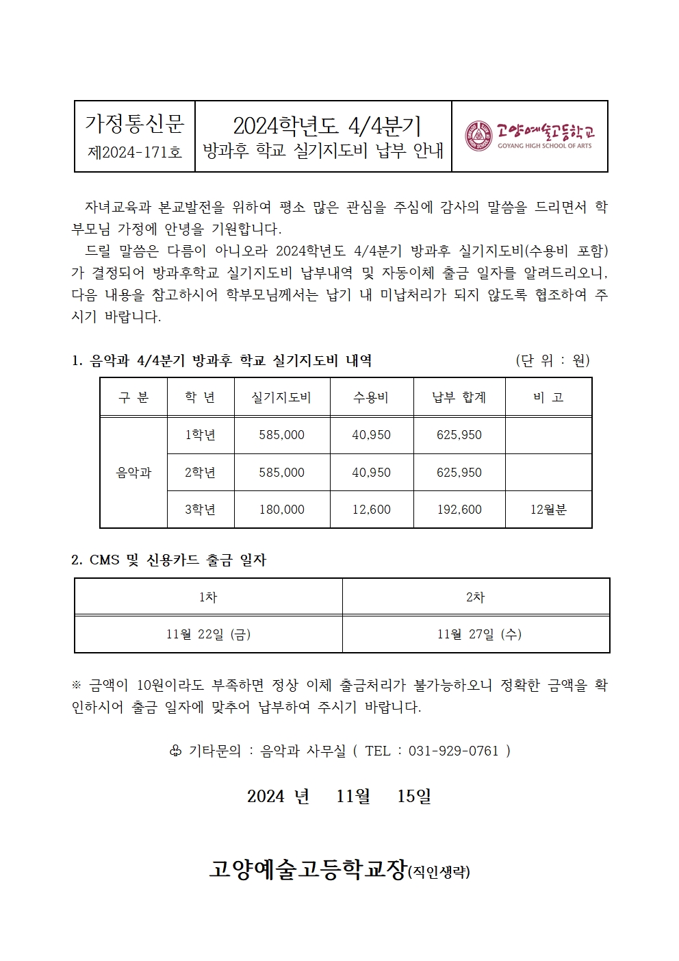 2024Çг⵵ À½¾Ç°ú 4/4ºÐ±â ¹æ°úÈÄ Çб³ ½Ç±âÁöµµºñ ³³ºÎ ¾È³»