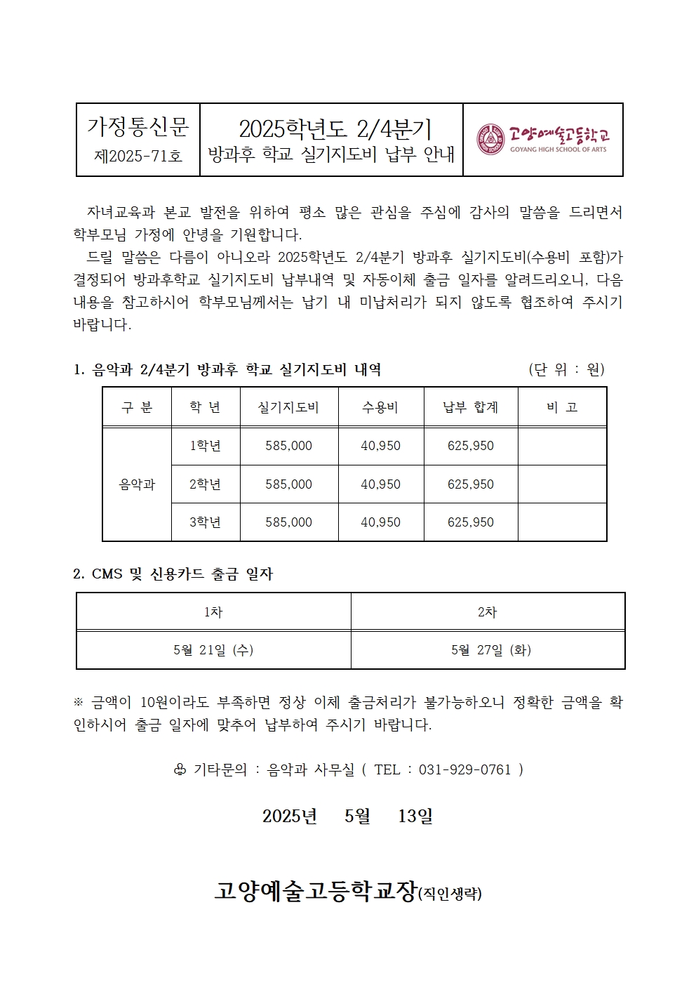 2025Çг⵵ À½¾Ç°ú 2/4ºÐ±â ¹æ°úÈÄ Çб³ ½Ç±âÁöµµºñ ³³ºÎ ¾È³»